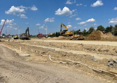 Wykonujemy roboty ziemne przy budowie hal przemysłowych, budowie dróg.